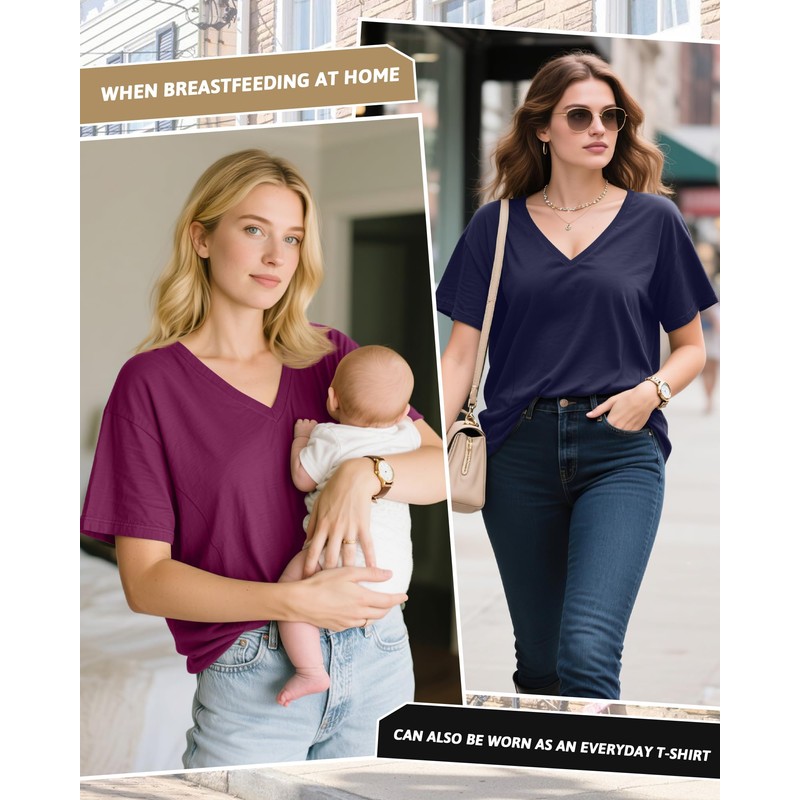 - Versatile Styling for Everyday Wear: transition seamlessly from casual outings to relaxed home days with these nursing tops for women; Pair the V neck oversize tee with leggings, jeans, or layered under cardigans-ideal for blending practicality with modern, minimalist aesthetics