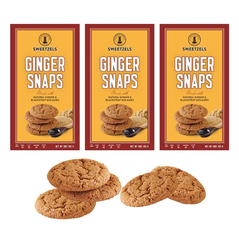 Sweetzels Ginger Snaps Cookies, made with Natural Ginger and Blackstrap Molasses, 10 oz Pack of 3