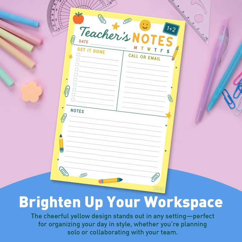 SWEETZER & ORANGE Teacher Planner Pad – Weekly Undated Lesson Planner for Teachers – 60 Tear-Off Sheets – 9” x 6” Compact Desk Notepad with Notes and Contact Section – Bright Yellow Border