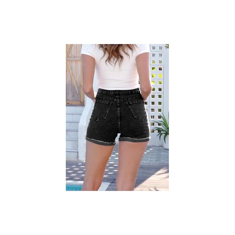 Sweezarmo Women's Summer Denim Shorts Distressed Ripped Hot Pants High Waisted Stretch Jeans with Pockets for Ladies Black Small