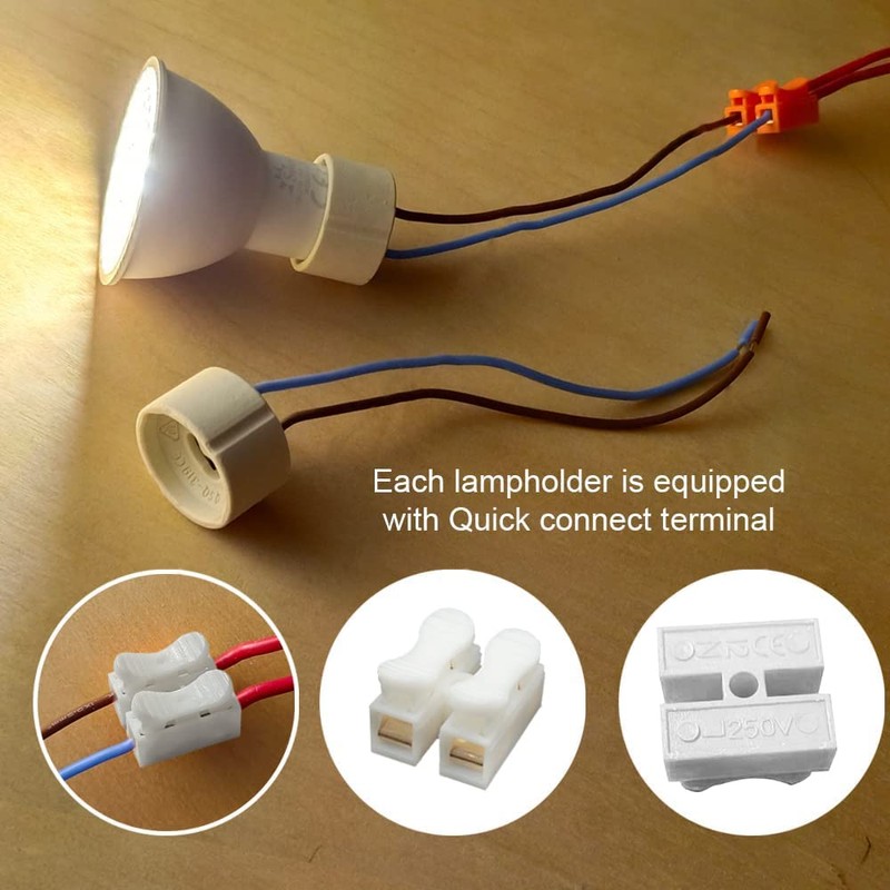 - Safe to use quality guaranteed: GU10 bulb holder is made of high temperature resistant ceramic and silicone connection wire, comes with quick connection, CE approved. suitable for LED bulbs