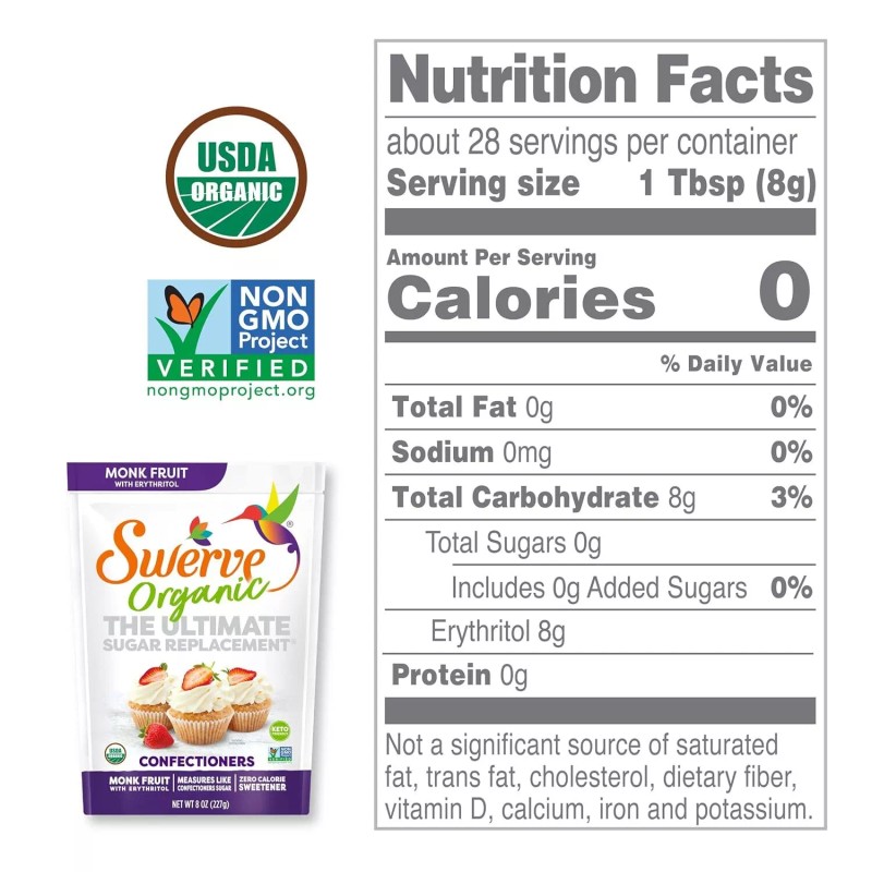 Swerve Organic Monk Fruit Blend Confectioners Sugar Replacement Sweetener 8 Ounc