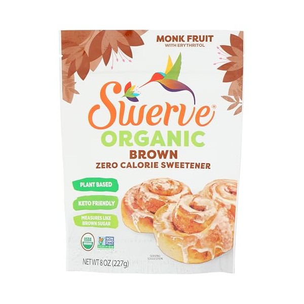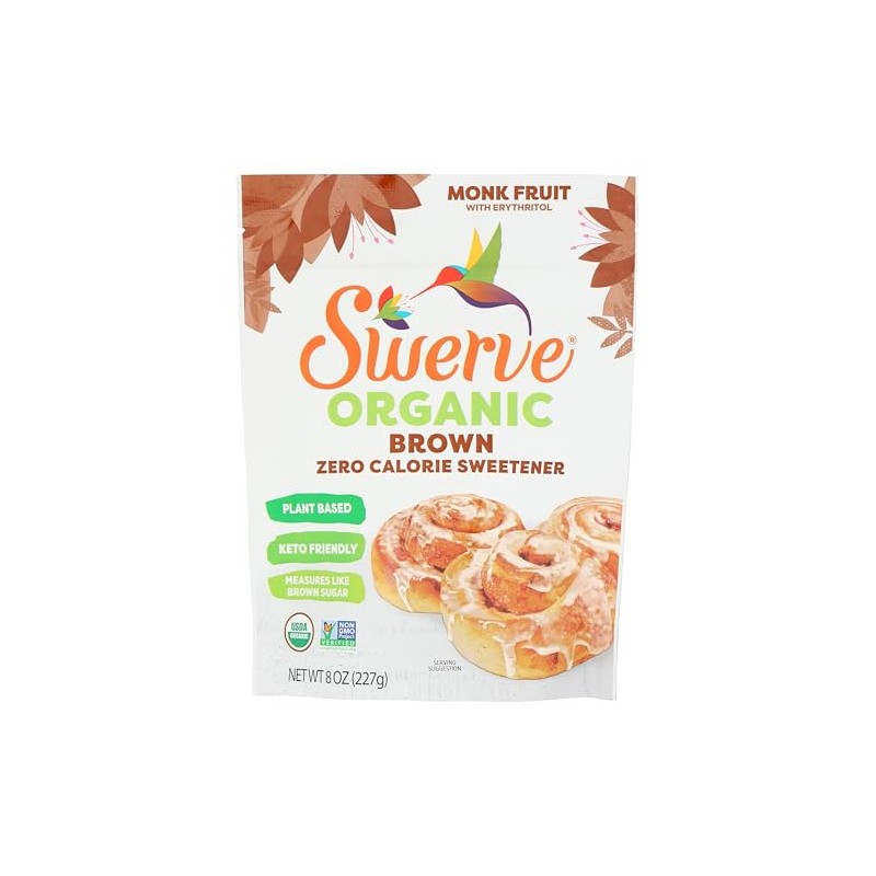 Monk fruit with erythritol. No artificial colors, flavors or preservatives. 0 calories. 0 g sugar. Zero net carbs. The ingredients in swerve do not significantly affect blood sugar, so the carbohydrates it contains are considered non-impact. Net carbs = total carbs - erythritol. USDA Organic. Certified Organic by: Quality Assurance. Gluten free. Keto friendly. The ultimate sugar replacement. Measures like confectioners sugar. This delicious, versatile sweetener measures like confectioners sugar with zero calories and Og sugar per serving for The Ultimate Sugar Replacement. This monk fruit and erythritol blend is made with no artificial colors, flavors, or preservatives. Since it measures like confectioners sugar, you can simply replace confectioners sugar with this sweetener in your favorite baked good recipes, in beverages, and more. Proudly part of Whole Earth Brands. SwerveSweet.com. Learn more about our process, our ingredients, net carbs, and what natural means to us at SwerveSweet.com.