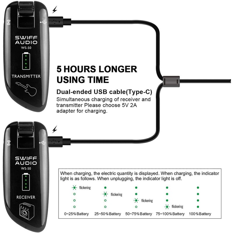 SWIFF High-Grade Electronic Guitar Wireless System Rechargeable Guitar Transmitter Receiver Support Multi Channels and Long Battery Life for Electric Musical Instruments