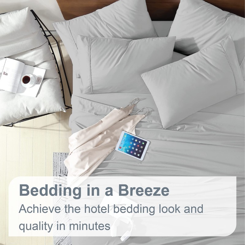 - EASY BREEZY: Why do we love hotel beddings? We yearn for the look, the feel, the pillows... The pillows...! Well now your room can feel like a hotel stay with the Swift Home 6-Piece Microfiber Sheet. Offering more pillowcases than the average sheet set, it takes only a few minutes to recreate your dream hotel bedding. What’s more, you can maintain that crisp, just-ironed look without even lifting an iron. A quick wash releases all the wrinkles.