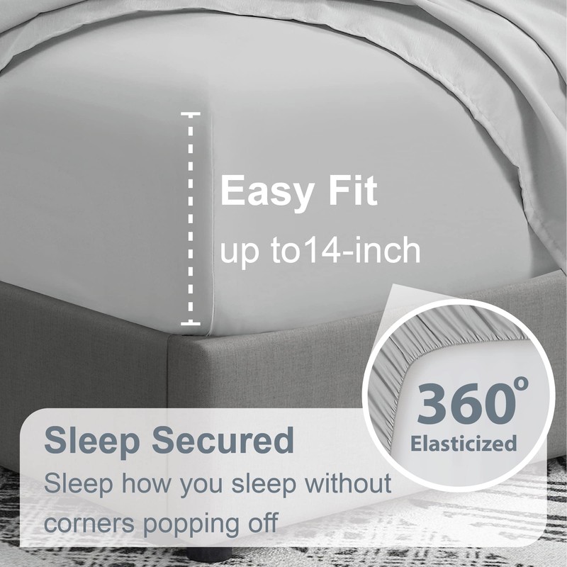- DREAM WILD: Our fitted sheet has your back. Made with all types of dreamers in mind, our 14-inch deep, fully elasticized fitted sheet fits and grips your mattress so you can sleep without the corners coming off.