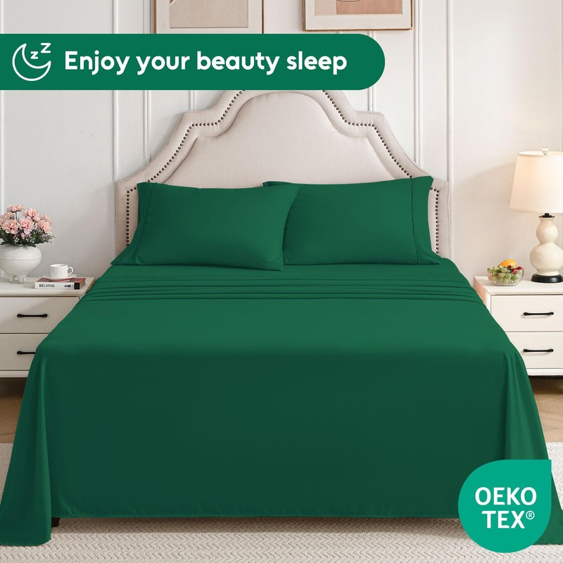 Swiftify King Size Sheets Set, 4 Pieces Hotel Luxury Soft Microfiber Bed Sheets Set, Up to 16" Deep Pockets, Oeko-Tex Sheets with Elastic, Breathable, Wrinkle Free (Forest Green, King)