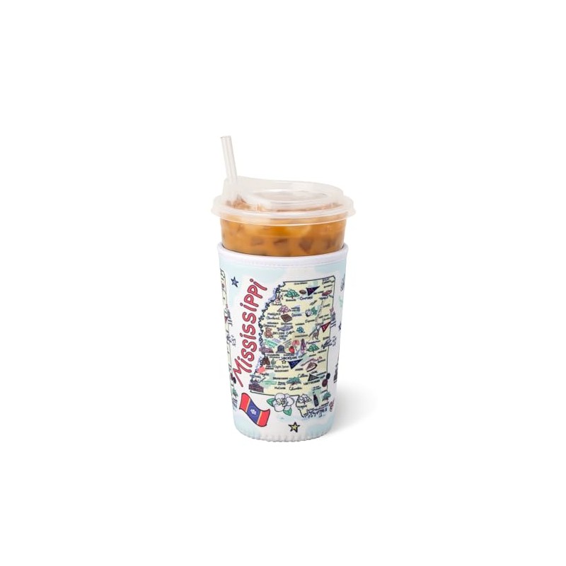 Swig Life Medium Iced Cup Coolie, Standard 22oz Iced Coffee Cup Insulator Sleeve with Handle, Neoprene Insulated Coolie Keeps Drinks Cold (Mississippi)