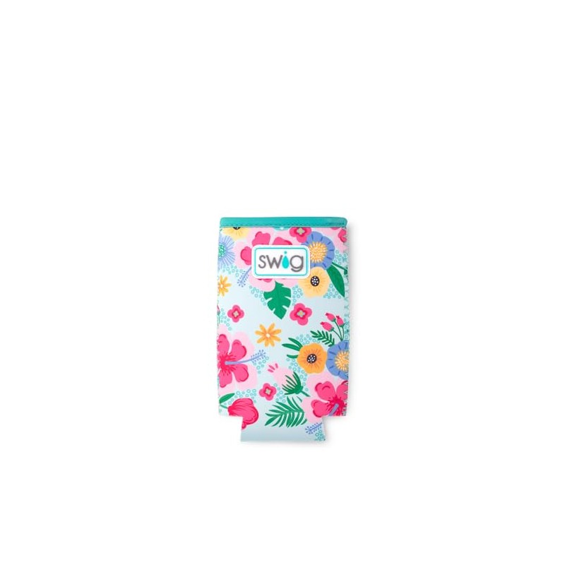 Swig Life Skinny Can Coolie, 12oz Slim Can Holder, Neoprene Insulated Cooler with Pocket, Covers for Tall Beer Bottles, Beach Accessories for Women (Island Bloom)