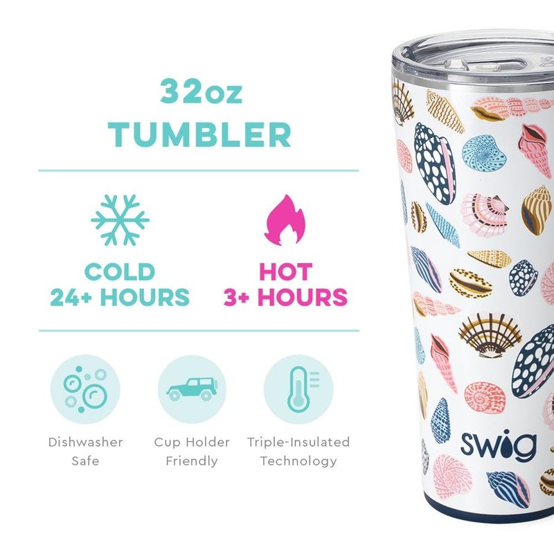 Swig Life XL 32oz Tumbler, Insulated Coffee Tumbler with Lid, Cup Holder Friendly, Dishwasher Safe, Stainless Steel, Extra Large Travel Mugs Insulated for Hot and Cold Drinks (Sea La Vie)