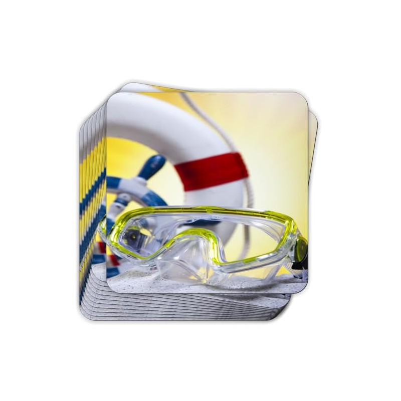 Swim Goggles and Life Ring by Pool Design - 3.5 Inch Soft Square Coasters Art (x8)