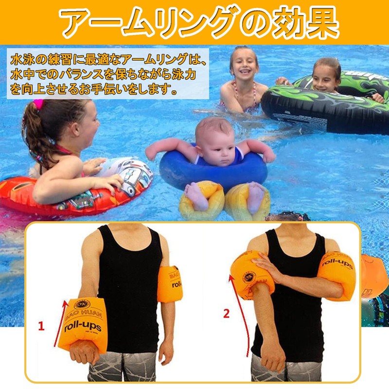 - (Product Specifications) Set of 2 arm rings are safe and easy to play in the water. The air chamber is two upper and lower compartments, so it can be worn on both arms