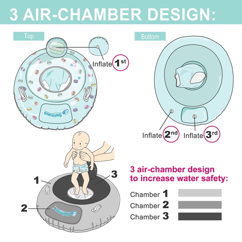 - 💧 Enhanced Durability and Comfort: The Swimava G3 is built for stability and comfort. The 3 air chambers are designed for extended air retention, enhancing the ring's buoyancy and ensuring it stays inflated longer for uninterrupted fun in the water.