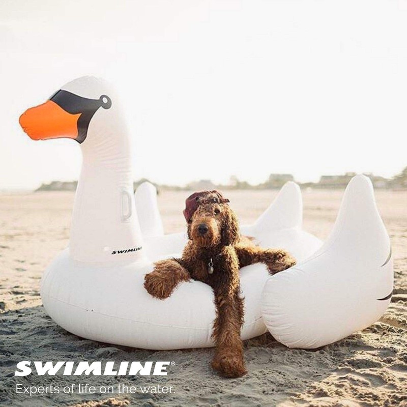 - {OVERSIZED DESIGN} This Original Ride-On Swan float features an extra large base design, providing plenty of room for lounging & relaxation. Perfect for 1 to 3 individuals looking for a spacious & comfortable way to relax & play in the water