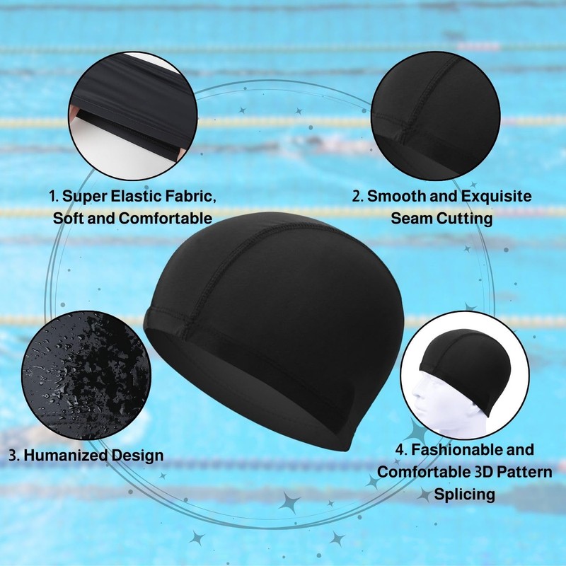 Swimming Cap for Men and Women, Fabric Elasticity Swimming Cap, Non-Slip Swimming Cap for Long and Short Hair, Durable Waterproof Swimming Cap for Adults (Black)