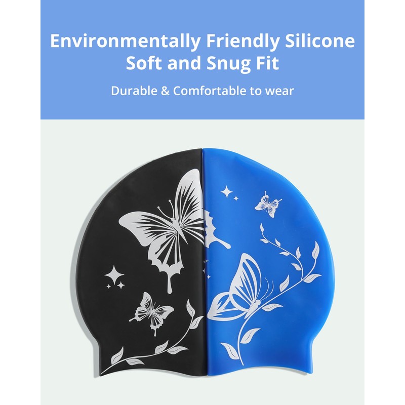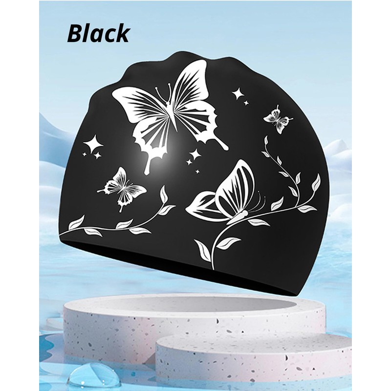 Swimming Cap for Women – Soft, Elastic, Anti-Slip, Stylish, Comfortable (Black Butterfly)