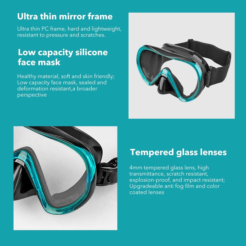 - High-quality silicone for best comfort: these adult diving goggles are made of soft, quick-drying silicone. Ergonomically shaped with nose protection - no leaks, ideal for swimming goggles men and women.