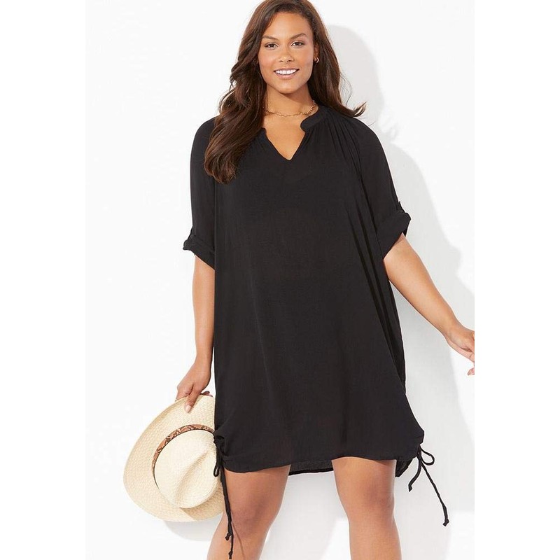 Swimsuits For All Women's Plus Size Abigail Cover Up Tunic - 10/12, Black