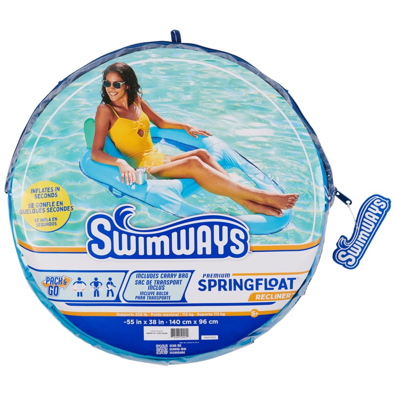 SwimWays Spring Float Premium Recliner Pool Lounger for Swimming Pool, Inflatable Pool Floats Adult with Fast Inflation for Ages 15 & Up, Sky Blue