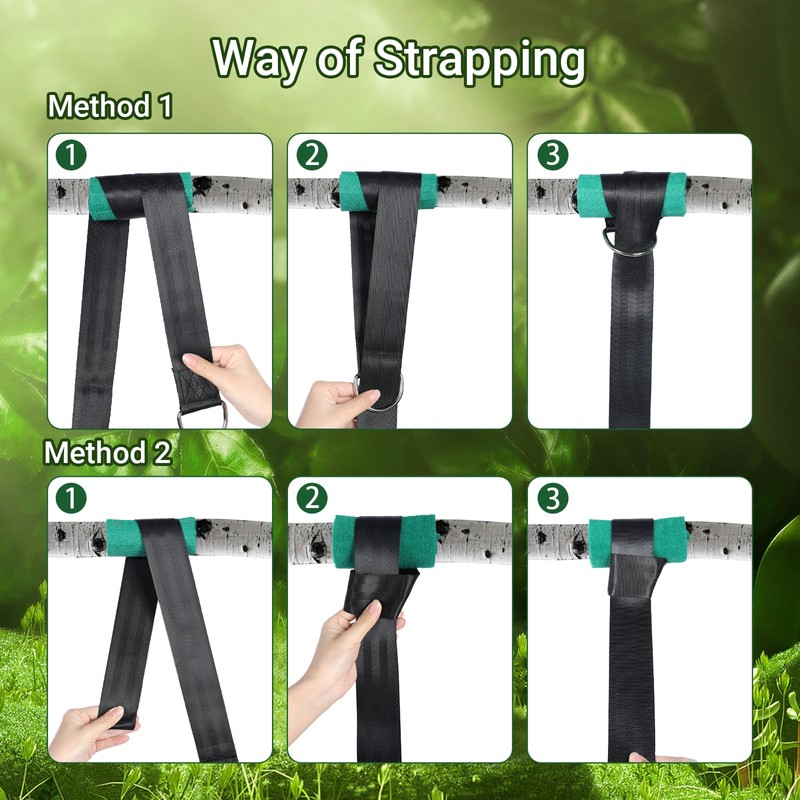 • HIGH QUALITY SWING & HAMMOCK ATTACHMENT KIT - The set contains two 150cm x 5cm thick polyester straps, made from high quality materials with precision weaving technique that ensures a secure hold of hanging chairs and seats and are suitable for indoor and outdoor use.