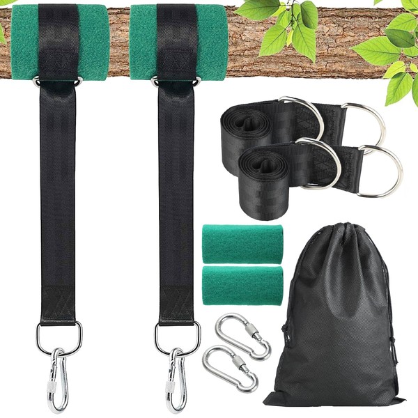 Swing & Hammock Attachment Set of 2 - 150 cm x 5 cm Straps with 2 Tree Protection Pads, 2 Premium Carabiners, D-Rings & Storage Bag - 400 kg Load Capacity - for Hanging Chairs, Swing & Hanging
