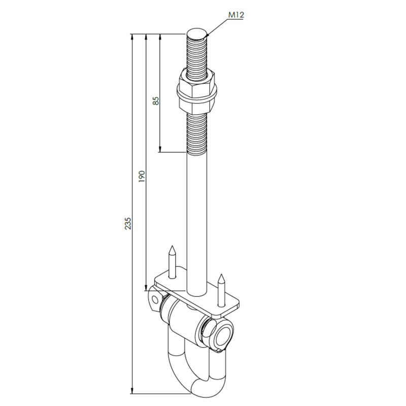 - Technical data: swing hook diameter 235 mm, steel S235 with hot-dip galvanised 60 µm, thread M12 x 190 mm, for round wood beams from diameter 100 to diameter 170 mm, max. Load up to 120 kg, weight 0.48 kg
