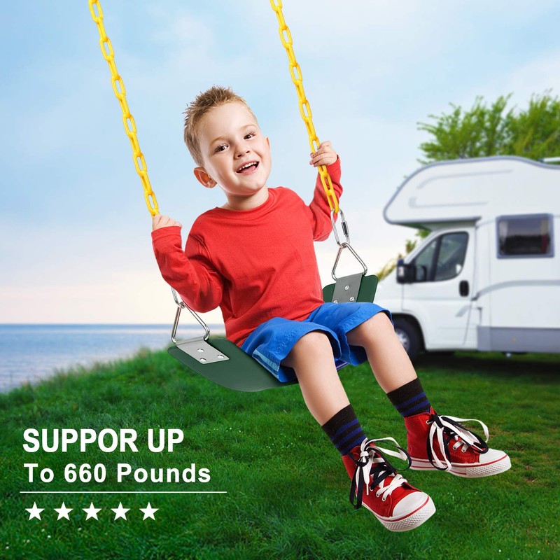AGPTEK Swing Set, Seat with 66 Inch Anti-Rust Chains Thermoplastic Coated, Support 250lb, Cushion Accessories Replacement with Snap Hooks for Outdoors, Playground, Jungle & Gym - Green