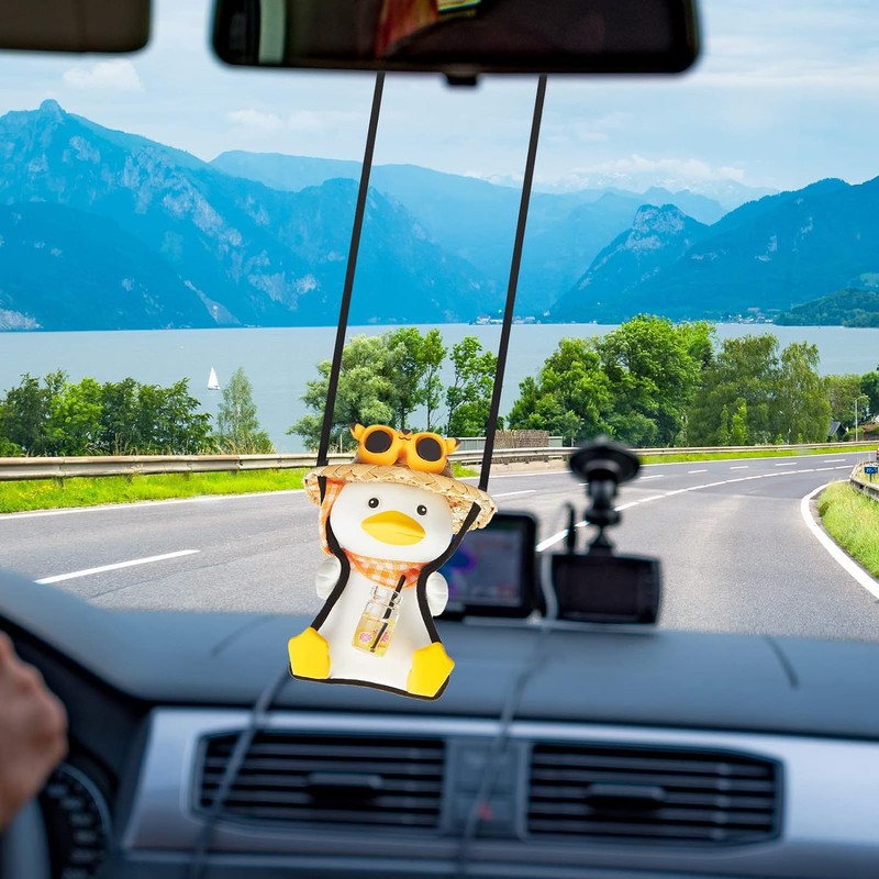 - Duck Car Swing Ornament: Little duck on his little swing.It's suitable for hanging car rearview mirrors, beautiful decorative ornament can swing around in your car or at home.Can well eliminate the driver's visual fatigue and increase safety.