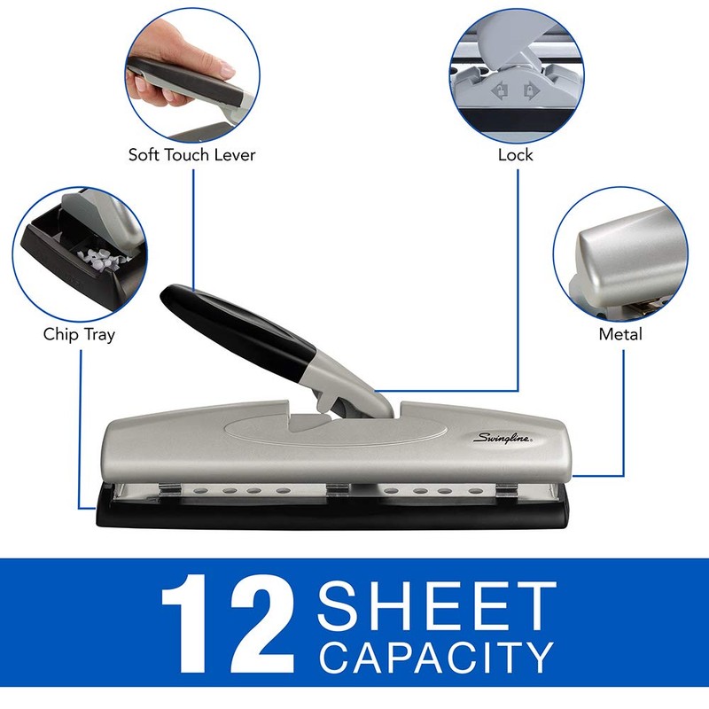 - Swingline Light Touch 12-Sheet Light TouchDesktop Hole Punch.