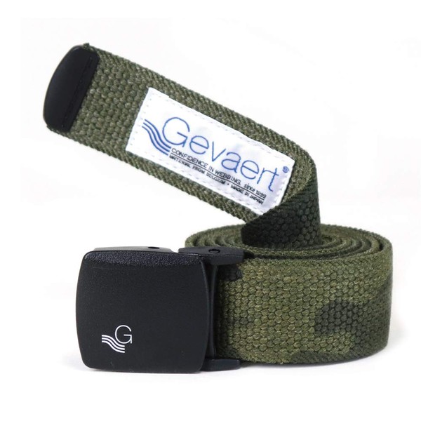 SwingPlus Gevalt Belt, GI Buckle, Camouflage Belt, Cloth Belt, Rubber, Camouflage, Military, Casual, Stretchable, Unisex, Made in Japan, One Size Fits Most, green