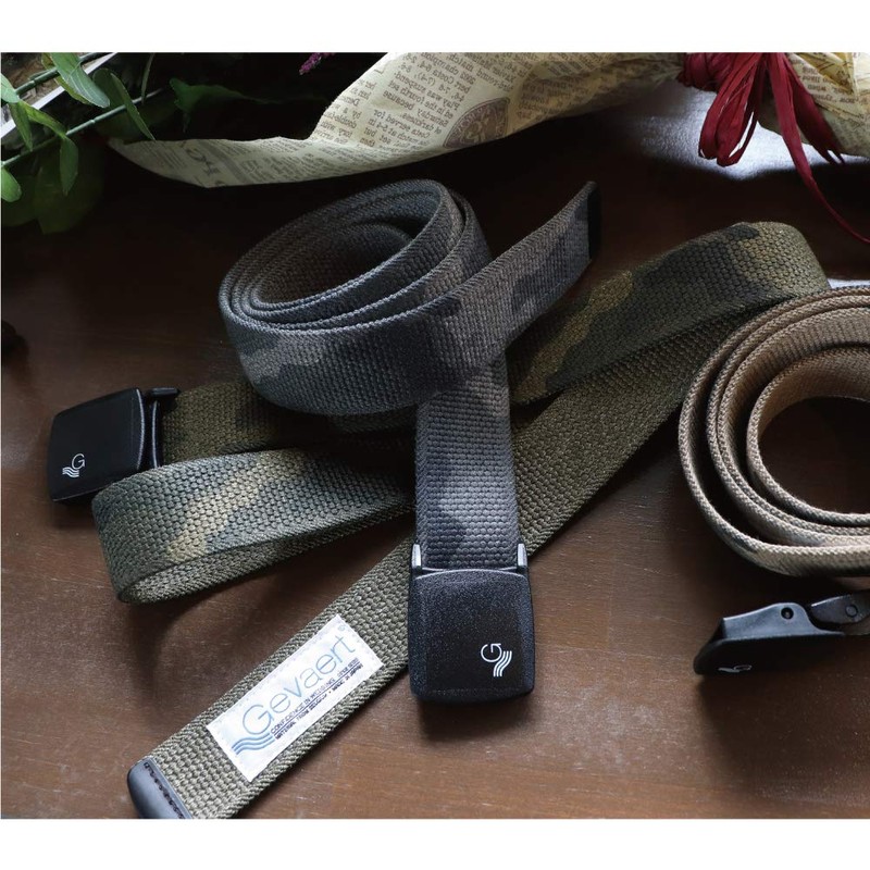 - This belt uses fabric made by the company GEVAERT BANDWEVERIJ, a long-established Belgian textile manufacturer founded in 1899. Belt finished at a factory in Japan. The YKK plastic buckle is made of 100% metal, so it won't get caught in airport security, and is also gentle on those with metal allergies