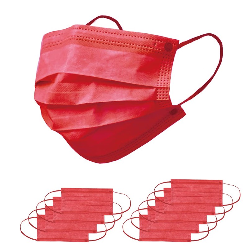 SWINGPLUS Non-woven Mask, Color Mask, Made in Japan, Pack of 10, Individually Packaged, Regular Size, Disposable (Red)