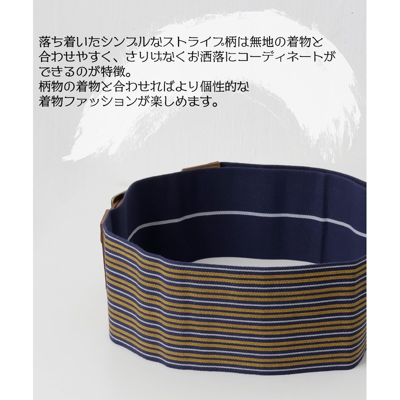 Features functional details. 4 different sizes can be adjusted easily according to the style and occasion. The buckle is antiqued, and it focuses on retro modern design and easy to adjust functionality. The kimono belt has been carefully sewn and striped pattern that expresses the "heart of Japan." Use accessories and other accessories for a more fashionable look.