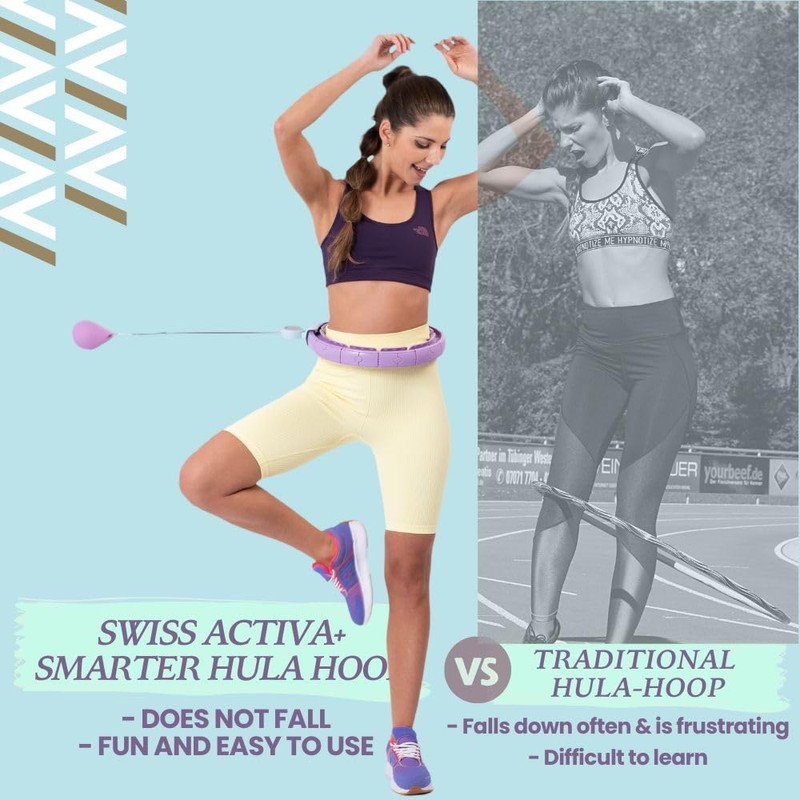 - 40% LESS NOISE - The Swiss Activa+ smart silent hula hoop is significantly quieter than conventional fitness hoops. Perfect for listening to your favorite music. More fun to lose weight.