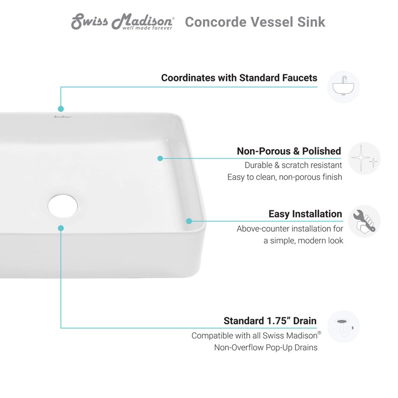 Swiss Madison SM-VS242 Concorde Rectangle Ceramic Vessel Sink