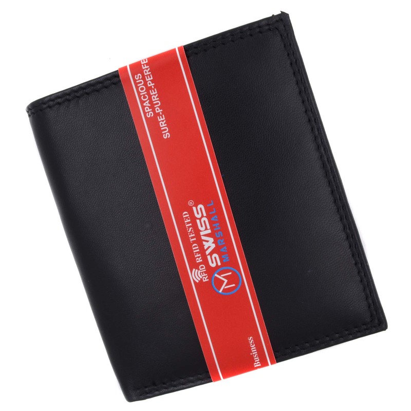 Swiss Marshall RFID Blocking Men's Slim Bifold Hipster Credit Card Premium Lambskin Leather European Wallet (Black)