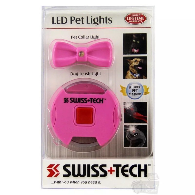 Swiss+Tech 5 LED Pink Pet Collar and 1" Dog Leash Lights Set