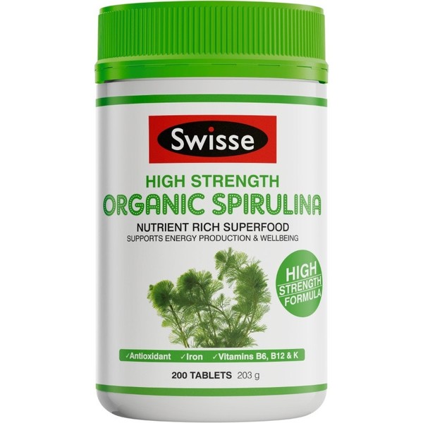 Introducing Swisse High Strength Organic Spirulina, your daily superfood ally. Our organic spirulina is a microscopic blue-green algae, packed with nutrients. Each tablet is a concentrated source of vitamins, minerals, and antioxidants. Perfect for vegans and vegetarians, it’s a natural source of iron and B vitamins. These vitamins contribute to normal energy metabolism, helping to reduce tiredness and fatigue while also supporting healthy immune system function*. Spirulina is also a good source of vitamin K which contributes to healthy bone structure*, fitting seamlessly into your wellness routine.