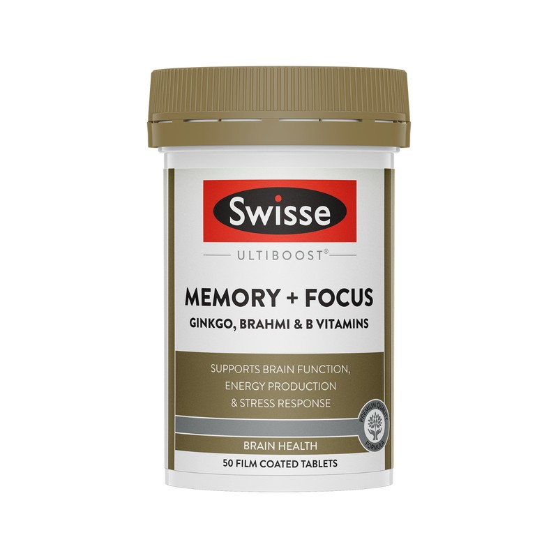 - Swisse Ultiboost Memory + Focus is a comprehensive formula containing ginkgo and brahmi. Ginkgo helps maintain healthy circulation and the delivery of oxygenated blood to the brain. Brahmi is included to support memory function and recall.