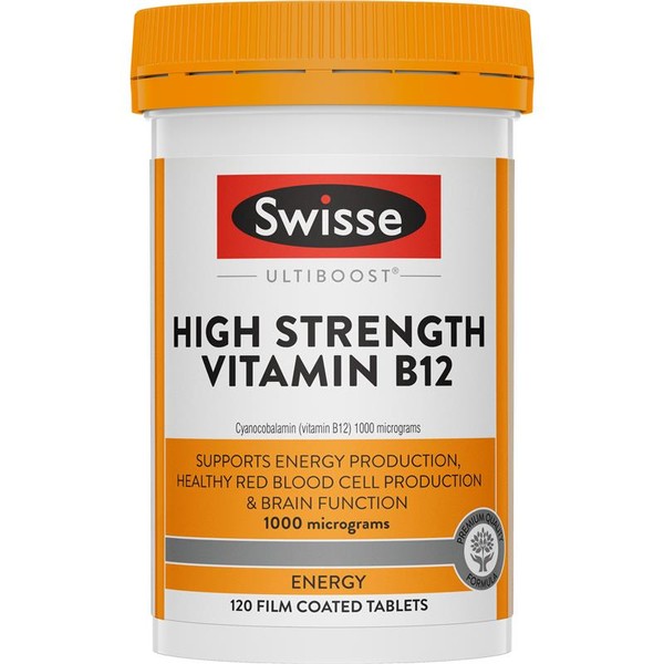 Introducing Swisse Ultiboost High Strength Vitamin B12. Each tablet, packed with 1,000 micrograms of vitamin B12, is your daily ally in maintaining energy production, brain function, and immune system health. Specially formulated for vegans and vegetarians, it's ideal support for an active, health-conscious lifestyle.