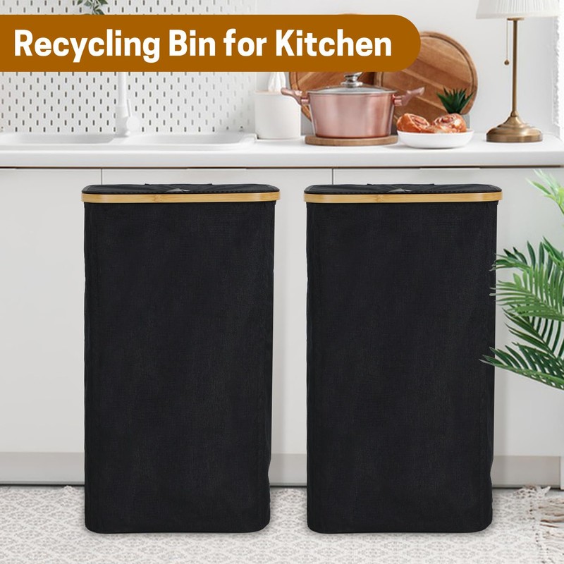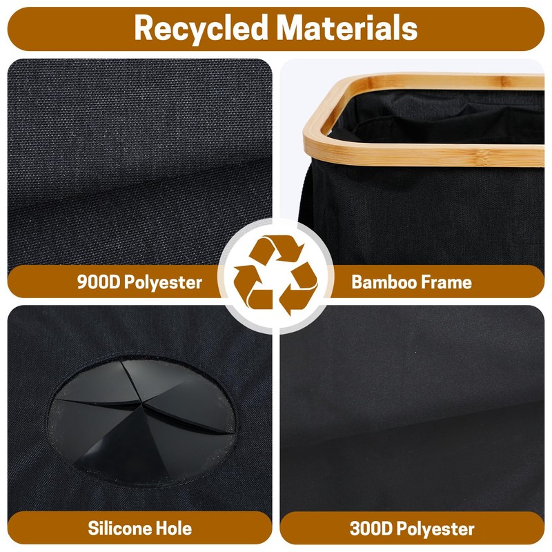 - Sustainable Materials: Both kitchen recycle bins are made from recycled 900D polyester cloth and bamboo frames, showcasing a commitment to environmental responsibility through recycled materials.