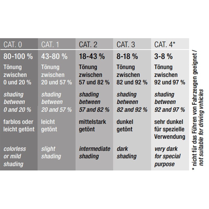 - With phototrophe discs that, depending on the intensity of Kategroie orange (1) to smoke (category 3) turn