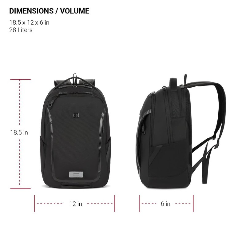SwissGear Shield Laptop Backpack, Black, 18.5”x12”x6”