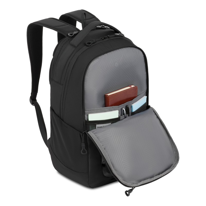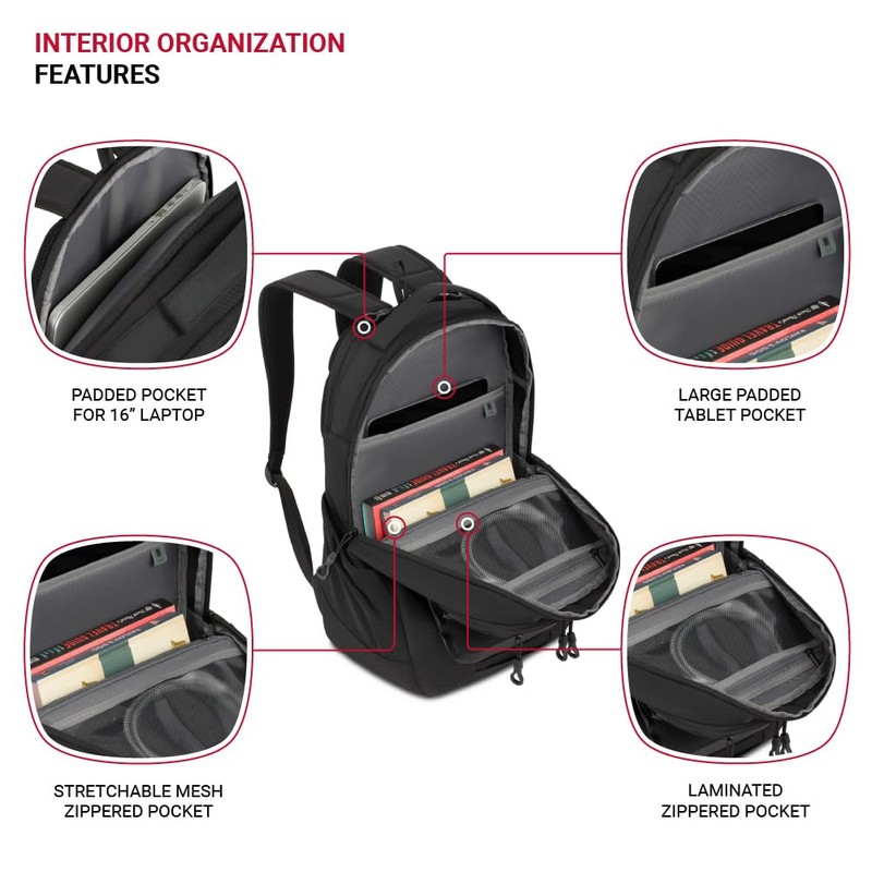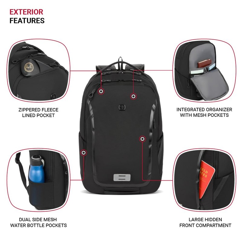 • Add-a-Bag Strap: A must-have travel backpack for men and women, this SwissGear backpack includes an add-a-bag rear strap that fits over luggage extension handles for easy and convenient movement through airports