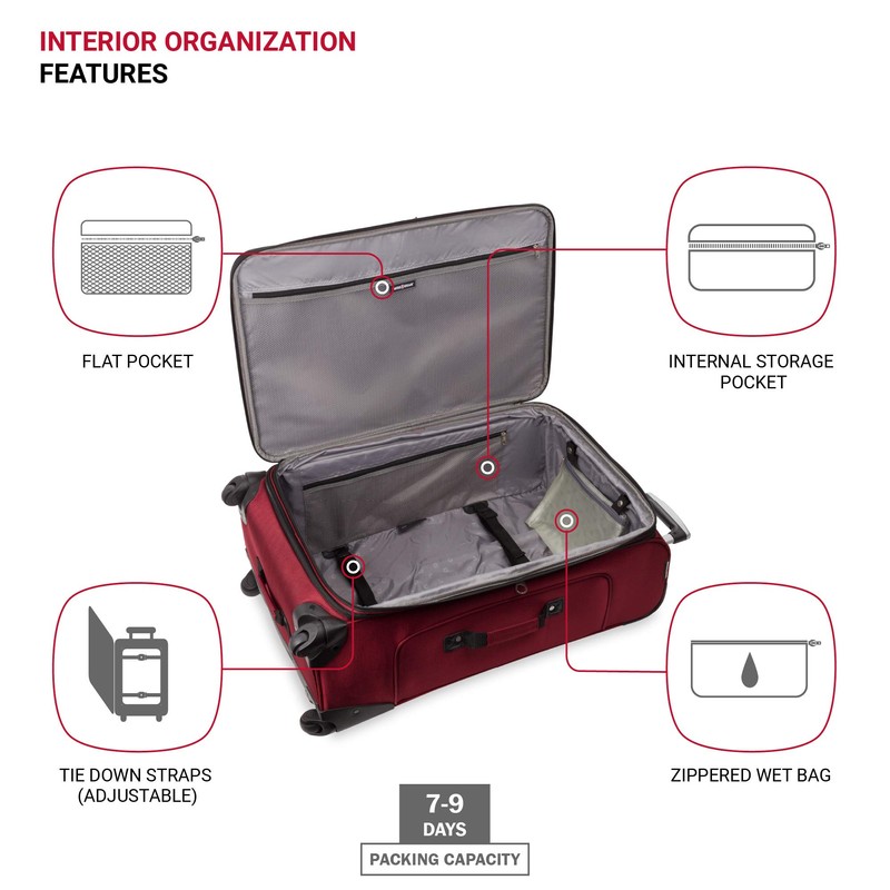 - Effortless Organization: This luggage bag maximizes packing efficiency with a removable zippered wet bag, large mesh lid pocket, and packing pocket for holding small items and accessories