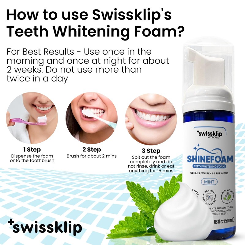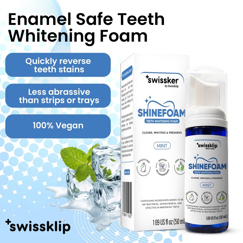 - Swissklip tooth whitening mousse offers a solution for whitening teeth with deep stains. Using teeth whitener regularly results in a brighter and more youthful smile. This teeth whitening for sensitive teeth foam provides professional level results with safe at-home usage