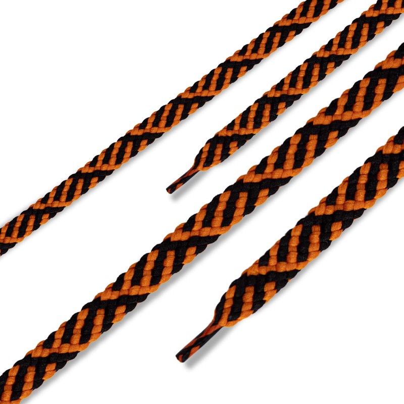 Swissly 1 pair of flat shoelaces for trainers and sports shoes – very tear-resistant – approx. 7.0 mm wide made of 100% polyester, colour: black/orange, length: 150 cm