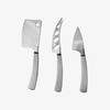 - Product Features 3-piece set includes 1 cheese cleaver (7.5"), 1 moist cheese knife (8"), and 1 parmesan cheese knife (7") A stylish set to accent your cheese or charcuterie board! Stainless steel blades for cutting and serving specific types of cheese Unique “SAND-BLASTED” handles Gift boxed