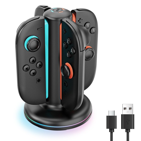 - 【Charging Solution for Switch 2 Joy-Cons】 This meticulously crafted switch 2 joycon charging dock is tailor-made for Switch 2 Joy-Con controllers, enabling you to charge up to four Joy-Cons at once. Say goodbye to unexpected battery drains during intense gaming sessions; with this switch 2 joycon charger, you'll always have fully powered controllers at your fingertips, ensuring uninterrupted gameplay.
