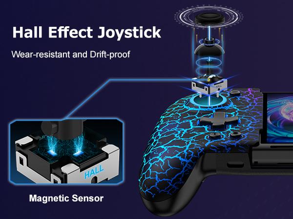 【Hall Sense Joystick Controller】This Switch controller comes with Hall Sense Joystick, the innovative electromagnetic induction technology allows your controller to never drift, you can precisely control your character in intense games, greatly extending the life of the controller.